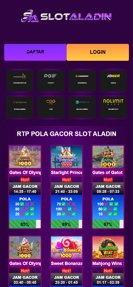 Slotaladin memiliki RTP yang tinggi dan akurat, sesuai dengan pola dan jam yang lagi bagus untuk hari ini